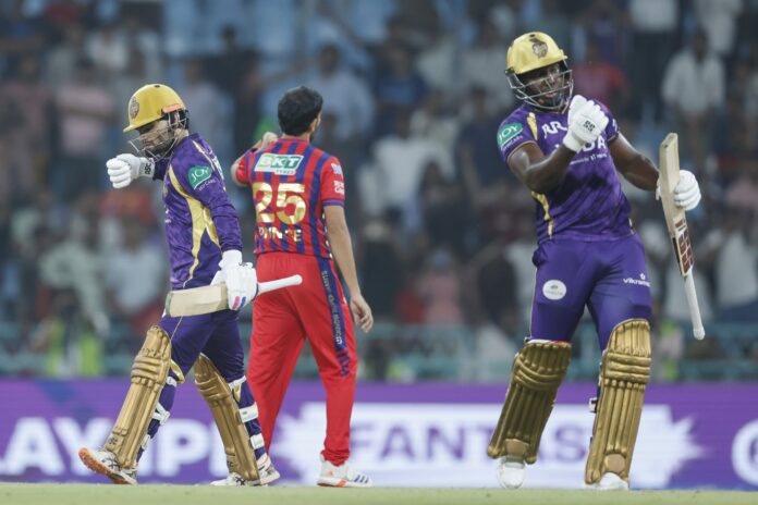 In a match between two of the IPL’s bottom-placed teams, the Kolkata Knight Riders defeated the Lucknow Super Giants via Super Overs in Lucknow on Sunday.