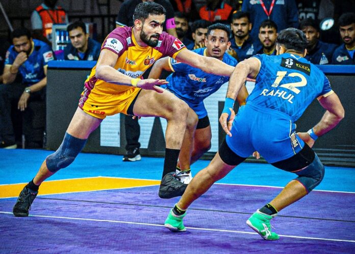 In his 100th PKL match, Bharat Hooda scored 20 points, which included four tackle points and 16 raid points. With eight points that evening, Vijay Malik also made a contribution.