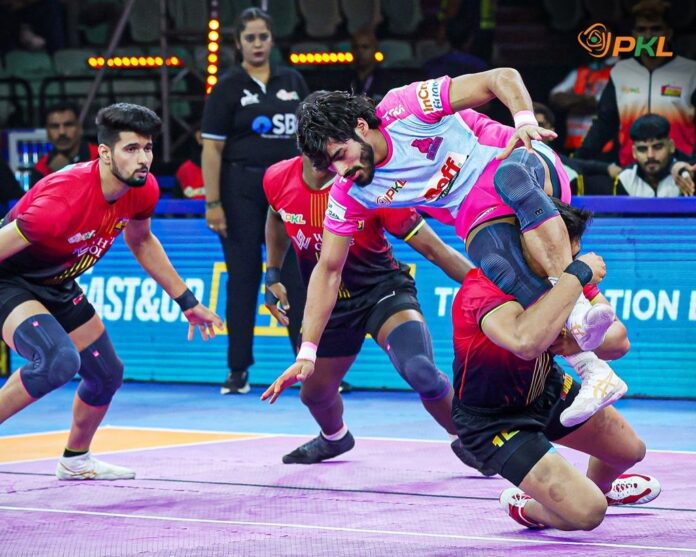 Even though Vinay gave it his best as one of the Pink Panthers’ raiders, their early skill was rewarded when the Jaipur Pink Panthers suffered an early “all out.” This meant that the Bulls led 12–8 in the opening 10 minutes.