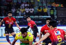 UP Yoddhas’ outstanding raiding effort enabled the team defeat Tamil Thalaivas 32–21 in the Thyagaraj Indoor Stadium in Delhi on Tuesday, capping an incredible comeback victory. The game might have gone any way, but the Yoddhas won for the second time in a row thanks to eight points from Guman Singh and six from Gagan. As the Yoddhas climbed up to eighth place in the standings, Hitesh’s high five in defense made sure Sagar Rathee’s high five was in vain.