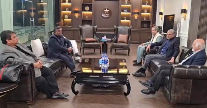 Pakistan Cricket Board chairman Mohsin Naqvi met with ICC deputy chair Imran Khwaja and his Bangladeshi counterpart Aminul Islam in Lahore on Sunday, as attempts to end the impasse over Pakistan’s planned boycott of the crucial T20 World Cup match against India pick more steam. The PCB shared pictures of the meeting, which was held at Gaddafi Stadium.